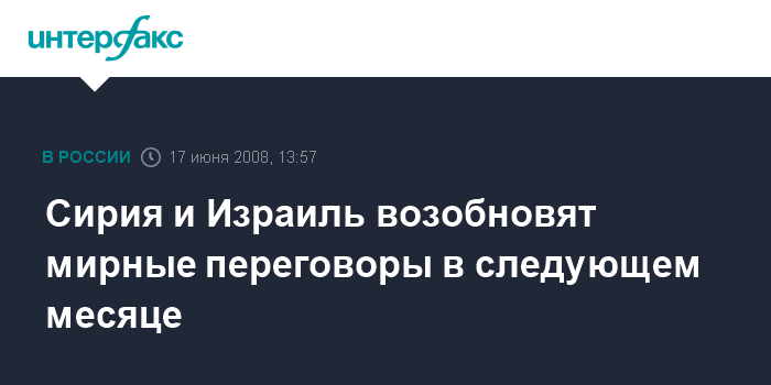 Сирия и Израиль возобновят мирные переговоры в следующем месяце