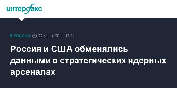 Москва. 22 марта. INTERFAX.RU - Российская сторона передала США сведения о составе и местах дислокации стратегических ядерных сил в соответствии с новым договором СНВ, сообщил "Интерфаксу" во вторник источник в российском Генштабе.