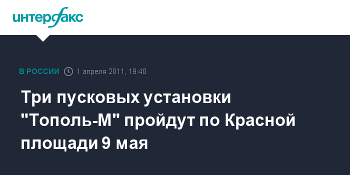 Три пусковых установки "Тополь-М" пройдут по Красной площади 9 мая