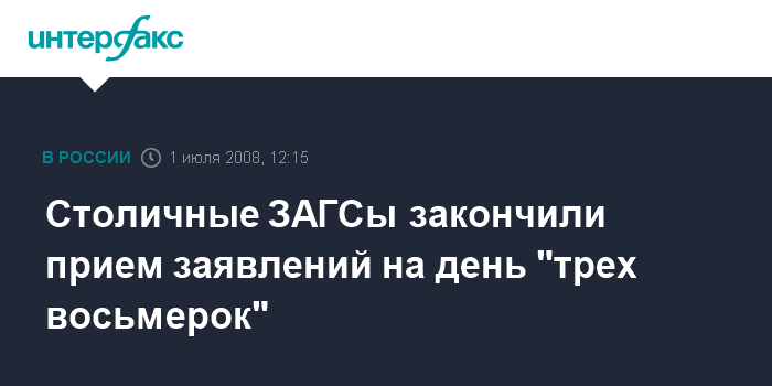 Столичные ЗАГСы закончили прием заявлений на день "трех восьмерок"