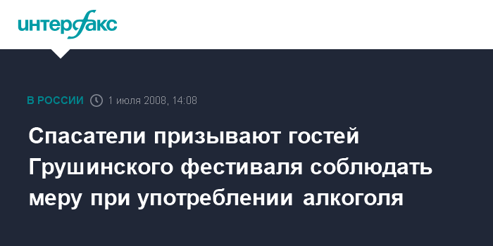 Москва. 1 июля. INTERFAX.RU - Сотрудники поисково-спасательной службы Самарской области призвали гостей и участников фестиваля бардовской песни им.В.Грушина соблюдать все меры безопасности и, самое главное, не злоупотреблять алкоголем.