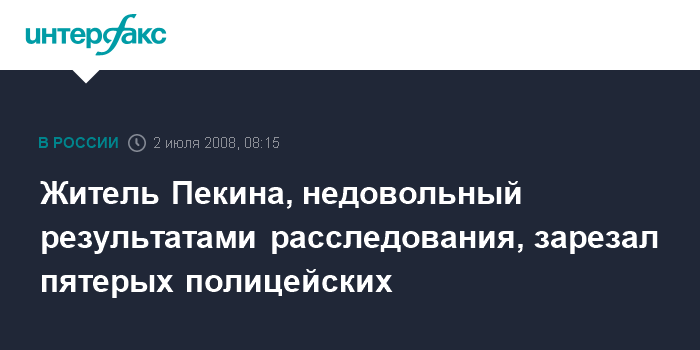 Житель Пекина, недовольный результатами расследования, зарезал пятерых полицейских