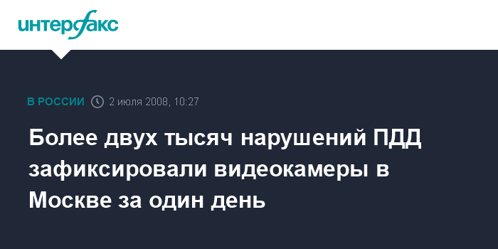 "Да, в ноль часов они (видеокамеры - ИФ) были включены, уже в рабочем режиме. Есть и первые результаты их работы - зафиксировано более двух тысяч нарушений. Это только по Москве", - сообщил начальник департамента обеспечения безопасности дорожного движения МВД России генерал Виктор Кирьянов.