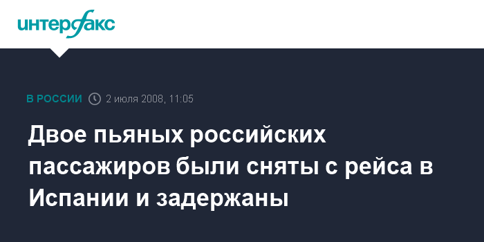 Москва. 2 июля. INTERFAX.RU - Двое граждан России с очевидными симптомами опьянения были задержаны служащими Гражданской гвардии Испании в мадридском аэропорту "Барахас", сообщает в среду испанская газета "Мундо".