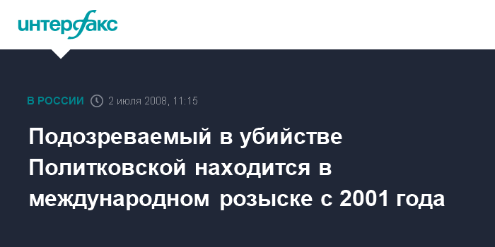 Москва. 2 июля. INTERFAX.RU - Генеральный прокурор РФ Юрий Чайка заявляет, что подозреваемый в убийстве обозревателя "Новой газеты" Анны Политковской был объявлен в международный розыск еще в 2001 году.