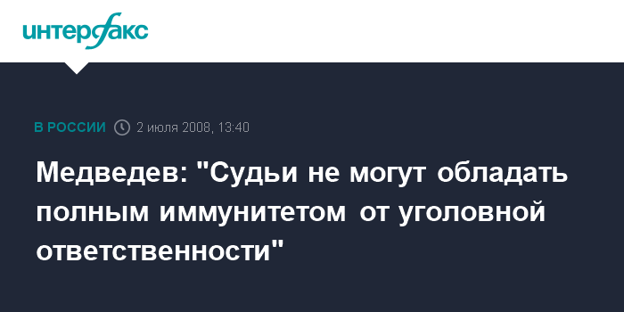 Медведев: "Судьи не могут обладать полным иммунитетом от уголовной ответственности"