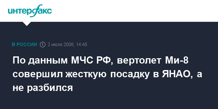 По данным МЧС РФ, вертолет Ми-8 совершил жесткую посадку в ЯНАО, а не разбился