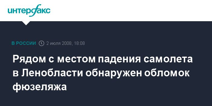 Рядом с местом падения самолета в Ленобласти обнаружен обломок фюзеляжа