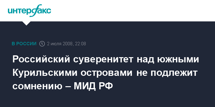 "Принципиальная позиция РФ состоит в том, что южные Курильские острова вошли в состав нашей страны по итогам Второй мировой войны и российский суверенитет над ними, имеющий соответствующее международно-правовое оформление, сомнению не подлежит", - сказал в среду официальный представитель МИД России Андрей Нестеренко.