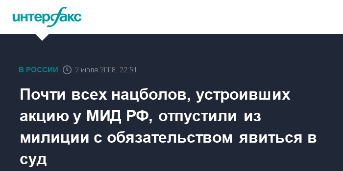 Почти всех нацболов, устроивших акцию у МИД РФ, отпустили из милиции с обязательством явиться в суд