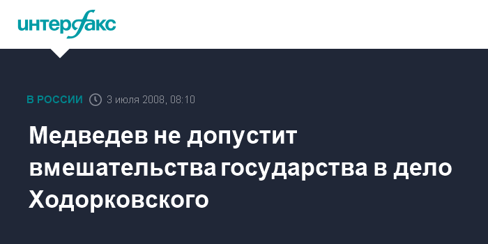 Медведев не допустит вмешательства государства в дело Ходорковского