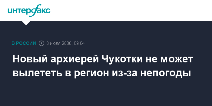 Москва. 3 мюля. INTERFAX.RU - Вылет архиепископа Хабаровского и Приамурского Марка на Чукотку, где он должен принять дела у епископа Диомида, пока задерживается из-за погодных условий.