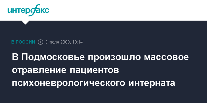 "В среду около 15:00 поступила информация от главврача интерната, который находится в ведении департамента социальной защиты населения Москвы, о массовом отравлении пациентов интерната. У них было отмечено повышение температуры до 37,5-39 градусов, а также понос", - рассказал собеседник агентства.