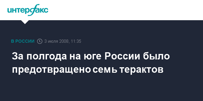 Москва. 3 июля. INTERFAX.RU – Семь терактов предотвращено на юге России за первое полугодие нынешнего года, сообщил директор ФСБ Александр Бортников в четверг на совещании Национального антитеррористического комитета (НАК) в Ростове-на-Дону.
