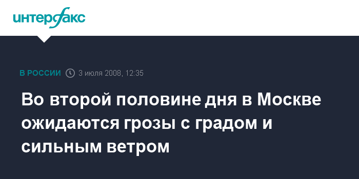 Москва. 3 июля. INTERFAX.RU – Сильный ветер и грозовые дожди с градом ожидаются в столичном регионе после полудня сегодня, сообщили "Интерфаксу" в Гидрометеобюро Москвы и Московской области.
