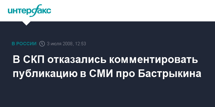 "Мы не комментируем публикации в прессе и не намерены комментировать данную статью", - заявил в четверг "Интерфаксу" официальный представитель СКП Владимир Маркин.