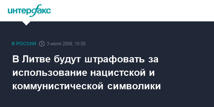 Москва. 3 июля. INTERFAX.RU - Сейм Литвы сегодня внес дополнения в Кодекс административных правонарушений, предусматривающие наказания за нарушение запрета публично использовать нацистскую и коммунистическую символику.