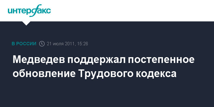 Горки. 21 июля. INTERFAX.RU - Президент РФ Дмитрий Медведев заявил, что не видит необходимости принимать новый Трудовой кодекс, однако высказался за регулярное внесение поправок в этот документ.