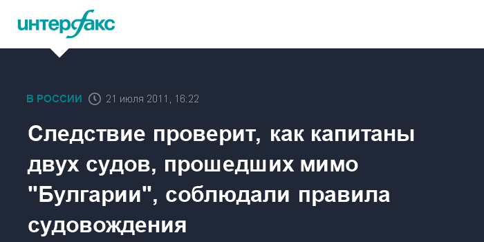 Следствие проверит, как капитаны двух судов, прошедших мимо "Булгарии", соблюдали правила судовождения