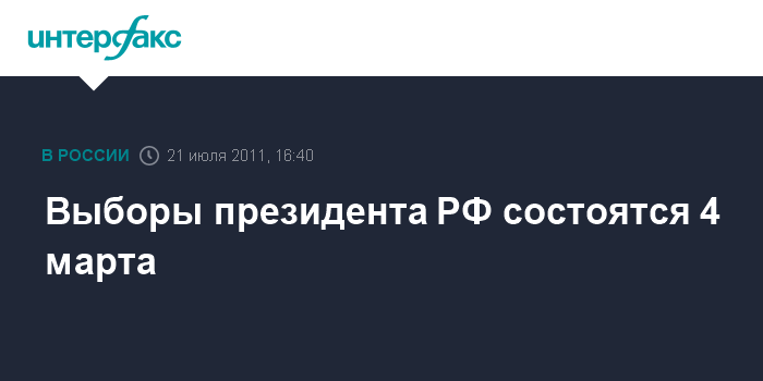 Москва. 21 июля. INTERFAX.RU - В связи с переносом выходного в 2012 году с воскресенья 11 марта на пятницу 9 марта выборы президента России должны будут состояться 4 марта.