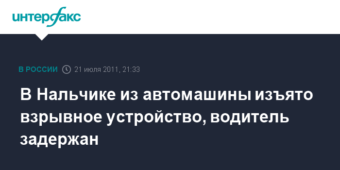 Ростов-на-Дону. 21 июля. INTERFAX.RU - Самодельное взрывное устройство изъято из легкового автомобиля, которым управлял житель Нальчика в столице Кабардино-Балкарии, сообщили агентству "Интерфакс-Юг" в правоохранительных органах республики.