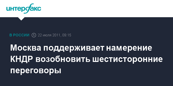 Москва поддерживает намерение КНДР возобновить шестисторонние переговоры
