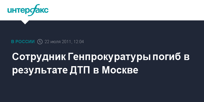 Москва. 22 июля. INTERFAX.RU - Два сотрудника Генеральной прокуратуры попали в ДТП в центре Москвы, один скончался, второй госпитализирован, сообщил "Интерфаксу" источник в правоохранительных органах.