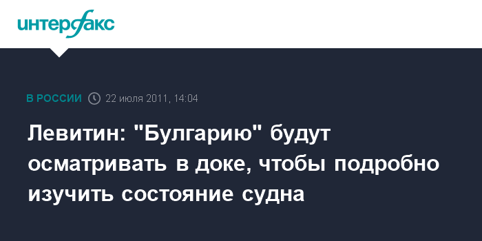 Левитин: "Булгарию" будут осматривать в доке, чтобы подробно изучить состояние судна