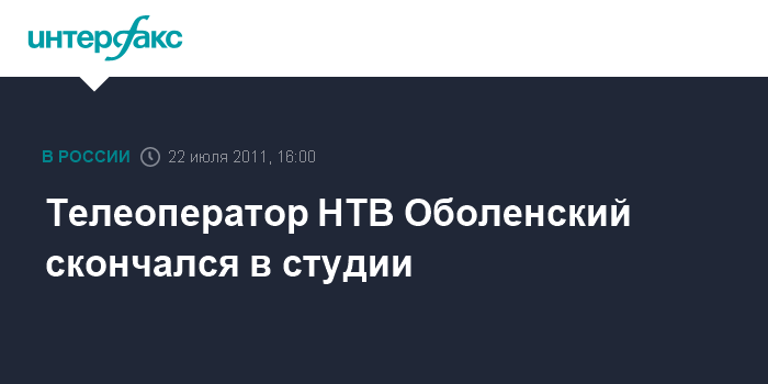 Москва. 22 июля. INTERFAX.RU - Телеканал НТВ подтвердил информацию о скоропостижной кончине своего оператора Юрия Оболенского.