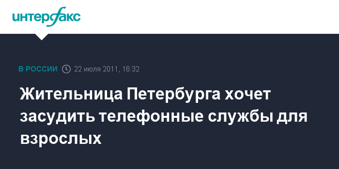 Санкт-Петербург. 22 июля. INTERFAX.RU - Жительница Петербурга намерена подать иск в суд на компании, предоставляющие интимные услуги по телефону, а также предлагающие знакомства в Сети.