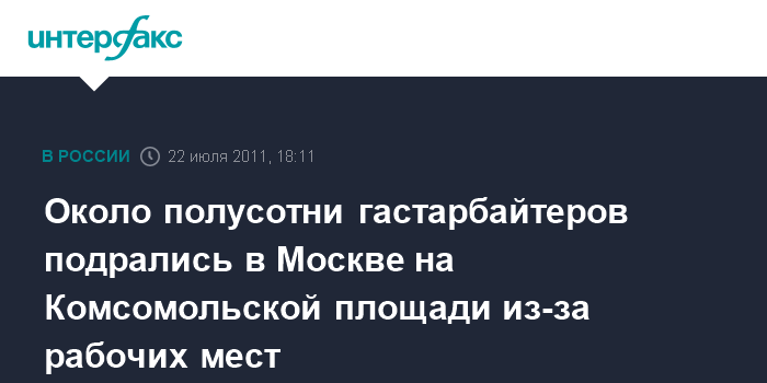 Москва. 22 июля. INTERFAX.RU - В центре Москвы на Комсомольской площади произошла массовая драка трудовых мигрантов.