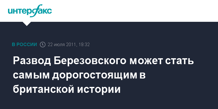Лондон. 22 июля. INTERFAX.RU - Развод российского бизнесмена Бориса Березовского, проживающего много лет в Великобритании, где ему предоставлено политическое убежище, может обойтись ему более чем в 100 млн фунтов стерлингов, пишет в пятницу британская газета Daily Telegraph.