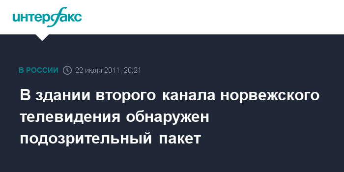 Осло. 22 июля. INTERFAX.RU - Из-за обнаружения подозрительного пакета в пятницу опечатано здание второго канала норвежского телевидения.