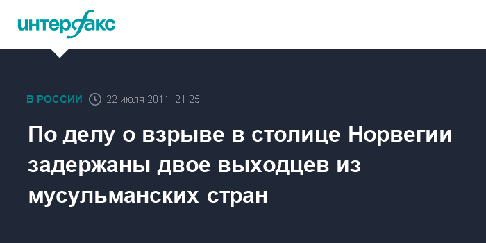 По делу о взрыве в столице Норвегии задержаны двое выходцев из мусульманских стран