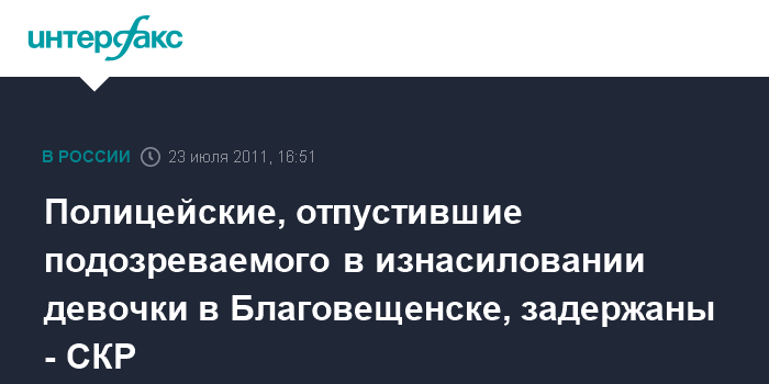 Полицейские, отпустившие подозреваемого в изнасиловании девочки в Благовещенске, задержаны - СКР