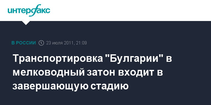 Транспортировка "Булгарии" в мелководный затон входит в завершающую стадию