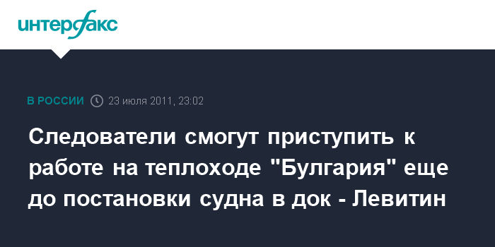 Следователи смогут приступить к работе на теплоходе "Булгария" еще до постановки судна в док - Левитин