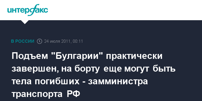 Подъем "Булгарии" практически завершен, на борту еще могут быть тела погибших - замминистра транспорта РФ