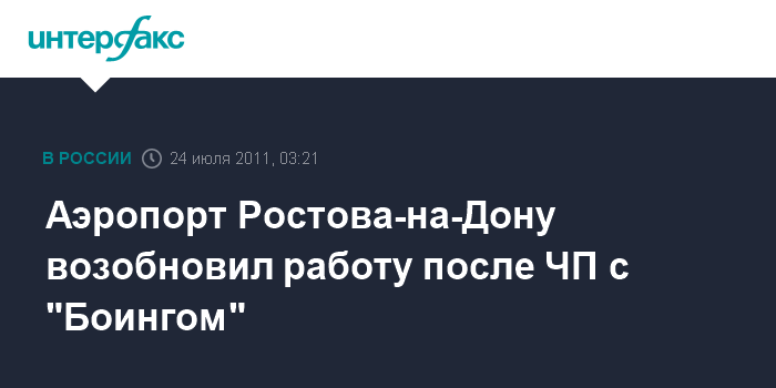 Ростов-на-Дону. 24 июля. ИНТЕРФАКС-ЮГ - Аэропорт Ростова-на-Дону, который с вечера субботы был закрыт из-за выкатившегося за пределы взлетно-посадочной полосы "Боинга", с 0:18 мск воскресенья работает в обычном режиме, сообщили агентству "Интерфакс-Юг" в экстренных службах региона.