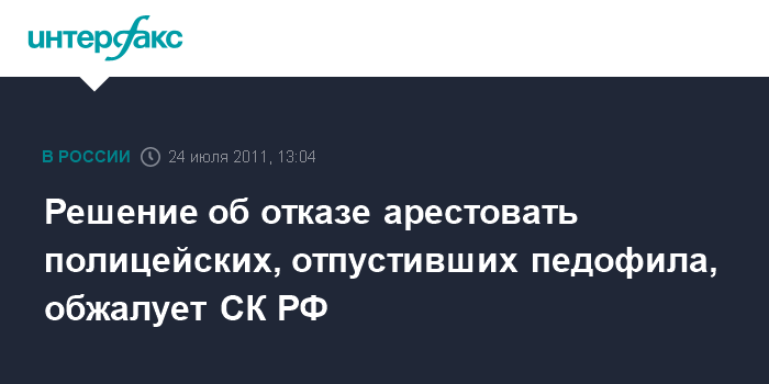 Решение об отказе арестовать полицейских, отпустивших педофила, обжалует СК РФ