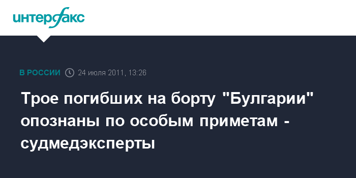 Трое погибших на борту "Булгарии" опознаны по особым приметам - судмедэксперты