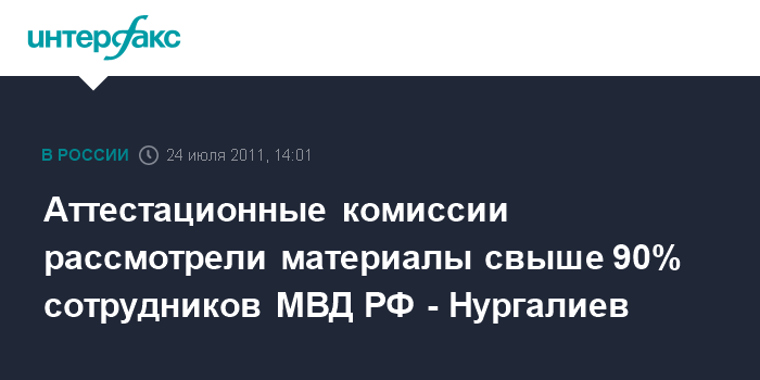 Аттестационные комиссии рассмотрели материалы свыше 90% сотрудников МВД РФ - Нургалиев