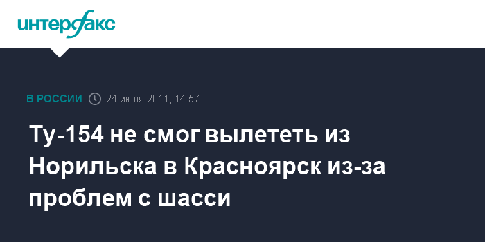 Ту-154 не смог вылететь из Норильска в Красноярск из-за проблем с шасси