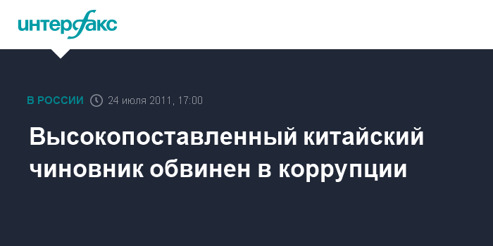 Высокопоставленный китайский чиновник обвинен в коррупции