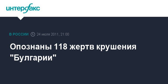 Казань. 24 июля. ИНТЕРФАКС-ПОВОЛЖЬЕ - По данным на 20:30 мск воскресенья в Республиканском бюро судмедэкспертизы в Казани опознана еще одна пассажирка затонувшего теплохода "Булгарии".