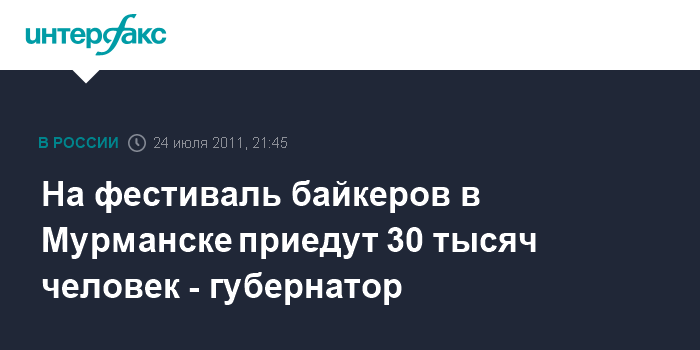 Мурманск. 24 июля. ИНТЕРФАКС - Около 30 тысяч человек примут участие в ежегодном байкерском фестивале "Arctic riders 2011" в Мурманске с 11 по 14 августа, сообщил "Интерфаксу" губернатор области Дмитрий Дмитриенко.