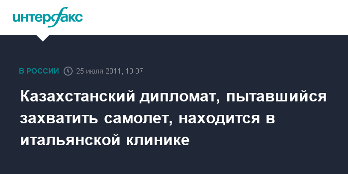 Казахстанский дипломат, пытавшийся захватить самолет, находится в итальянской клинике