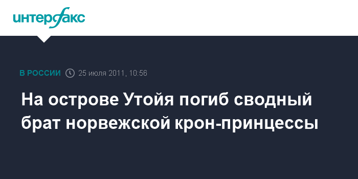 Осло. 25 июля. INTERFAX.RU - Одной из жертв бойни на норвежском острове Утойя стал сводный брат норвежской крон-принцессы Метте-Марит, сообщил в понедельник Королевский суд Норвегии.