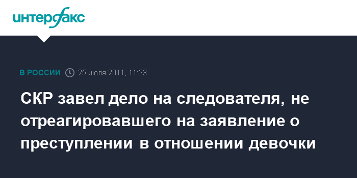 СКР завел дело на следователя, не отреагировавшего на заявление о преступлении в отношении девочки