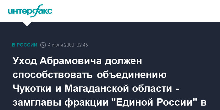 Уход Абрамовича должен способствовать объединению Чукотки и Магаданской области - замглавы фракции "Единой России" в ГД РФ Пехтин